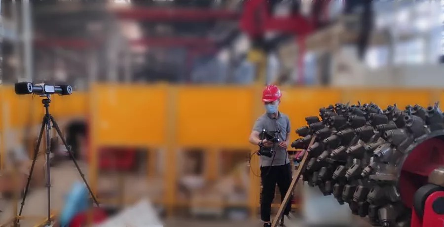 銑刨鼓是道路銑刨機的核心,需經(jīng)過嚴(yán)格的檢測,以避免磨損以及變形的負(fù)荷縮短設(shè)備使用壽命。過去采用接觸式打點來進(jìn)行檢測,不但測量速度慢,而且測量死角多,測量數(shù)據(jù)不全,且銑刨鼓的刀頭為活動刀頭,裝配后測量無法測得準(zhǔn)確的刀頭點位。