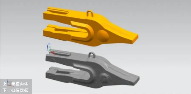 客戶主要經(jīng)營(yíng)礦山機(jī)械的開發(fā)和生產(chǎn),現(xiàn)在需要對(duì)現(xiàn)有老舊礦山挖斗進(jìn)行更新優(yōu)化和創(chuàng)新。礦山挖斗本身較大,長(zhǎng)度約3米,主要掃描區(qū)域?yàn)橥诙非把b配挖齒的部分,最后將挖斗主體與配件挖齒裝配,進(jìn)行開模加工。