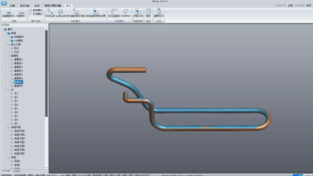 使用RigelScan智能手持式激光3D掃描儀代替彎管檢具,對(duì)管徑10mm的叉車油管進(jìn)行測(cè)量,直接快速獲取準(zhǔn)確的彎管數(shù)據(jù);同時(shí)利用掃描軟件RigelScan里的管件模塊可實(shí)現(xiàn)高效自動(dòng)檢測(cè),并支持與彎管機(jī)無(wú)縫對(duì)接。